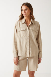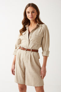 New in from Only is this linen shirt featuring two upper pockets and a oversize fit, wear with trousers and sandals to complete the look.