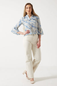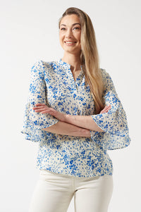 Cornelia Floral Printed 3/4 Sleeves Blouse in White