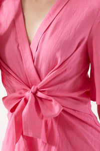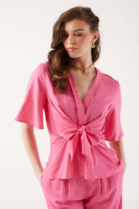 In vibrant colour options, the Roberta Linen top is the perfect option to update your summer outfits. Featuring a V-Neck, tie detail at the front, short sleeves and a linen material, it has matching trousers, which make a stunning outfit.