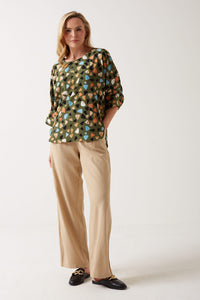 Elaine Printed Top in Khaki