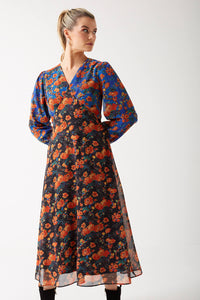 This floral midi dress is the perfect Autumn/Winter dress. Wear with boots and leather jacket to complete the look.