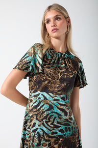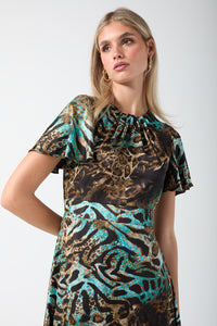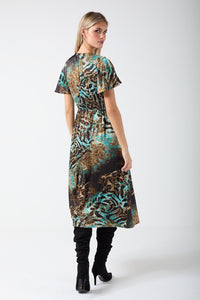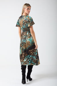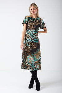 Corina Animal Print Midi Dress in Blue