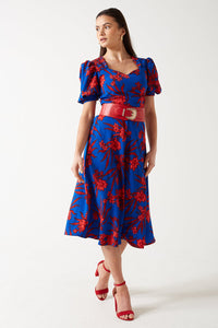 This floral print midi dress features a feminine sweetheart neckline and short puff sleeves. Team with heels for an occasion look.
