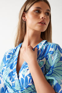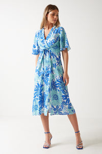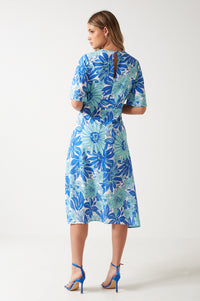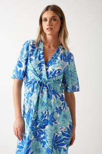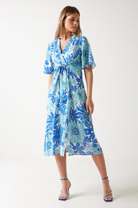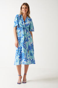 Get the Summer feel with our fabulous knot front calf length dress. Featuring a botanical floral print and easy to dress up or down.
