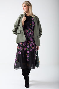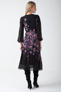 Malliah Floral Long Sleeve Midi Dress in Purple