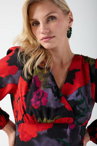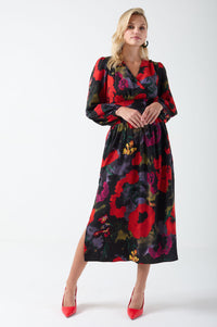 Rose Floral Print Midi Dress