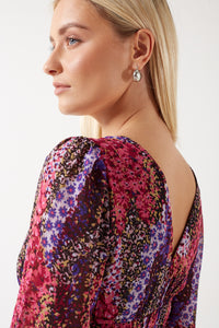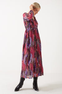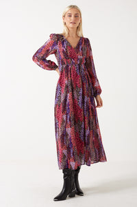 Featuring a boho-like aesthetic, this floral printed dress is versatile enough to go from a daily casual outfit to a holiday one. Style it with sandals and a belt for a warmer day or with boots and a leather jacket to wear in between seasons.