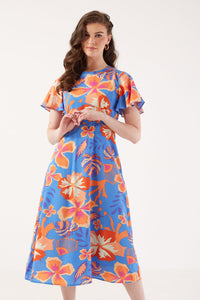 This cute floral printed midi dress can be worn for a casual day outfit. Style it with trainers or flats, add a cardigan and you will have a comfy everyday look for the spring-summer season.