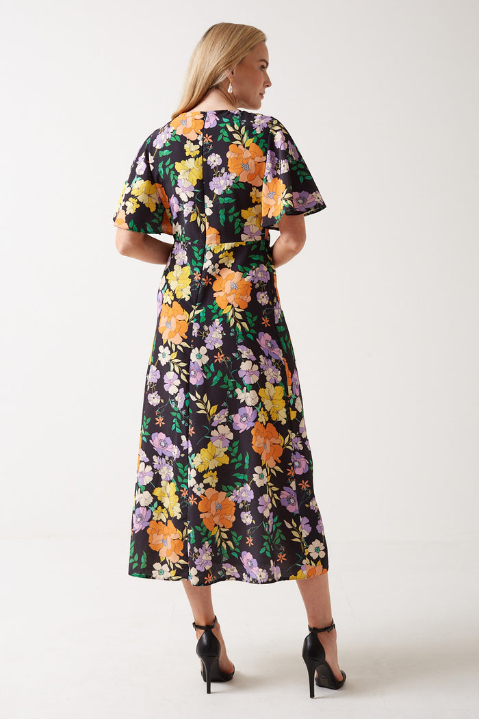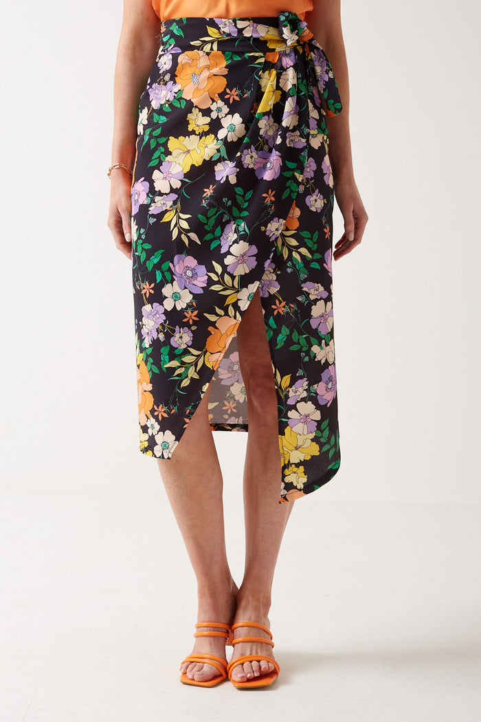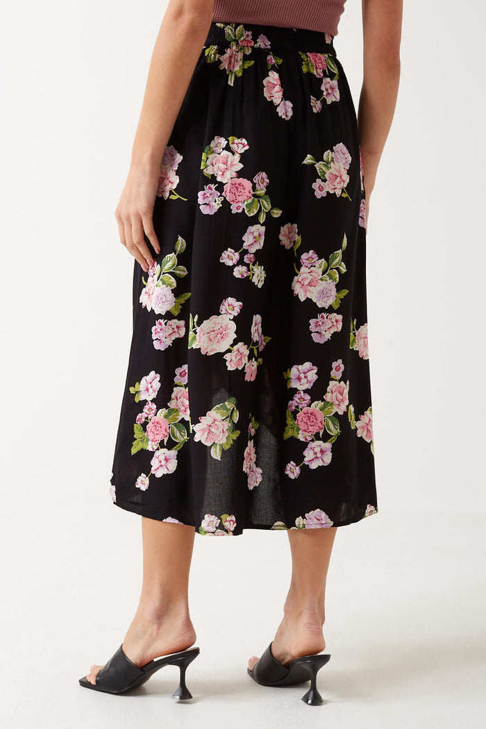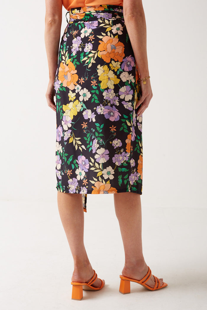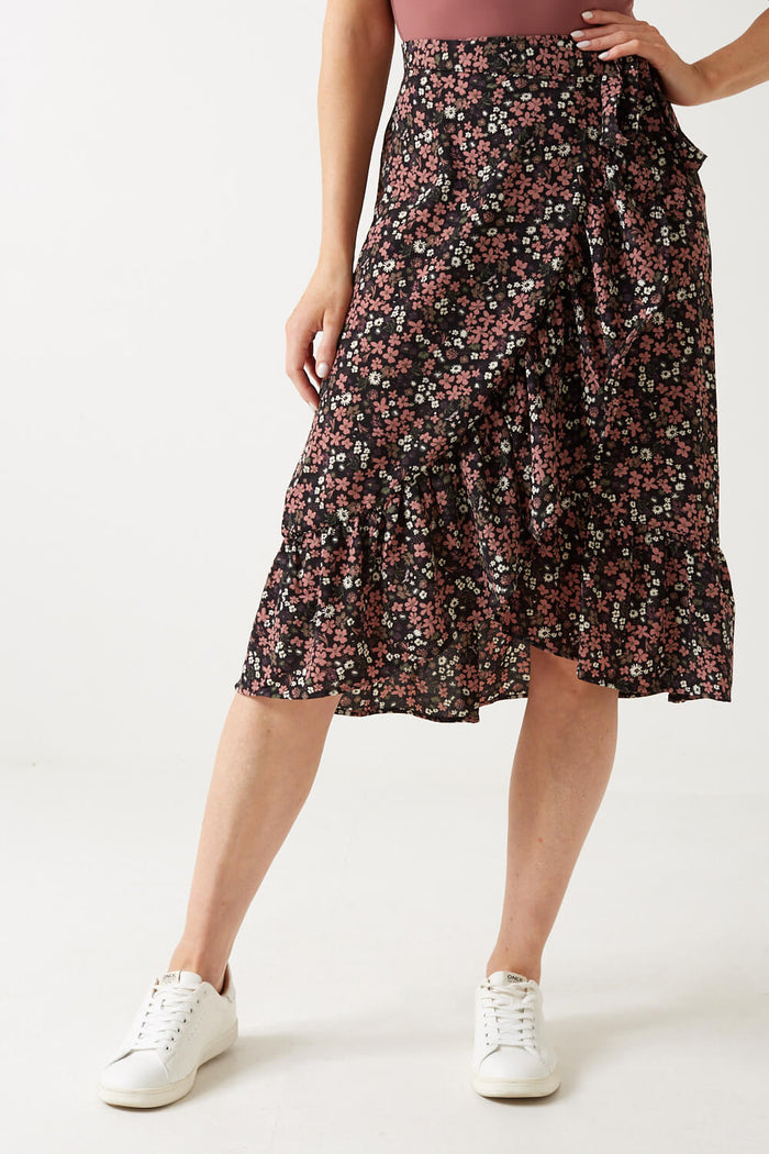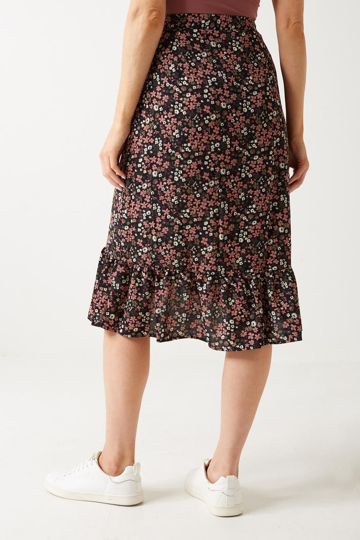 Jaxon Floral Print Wrap Midi Skirt in Black