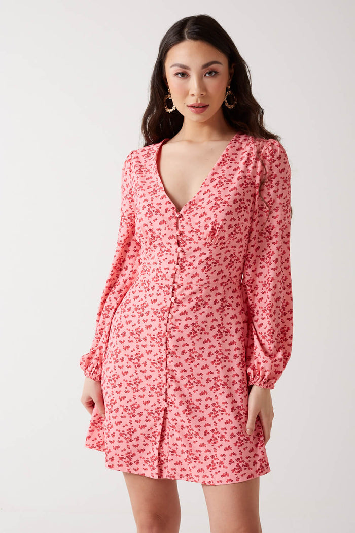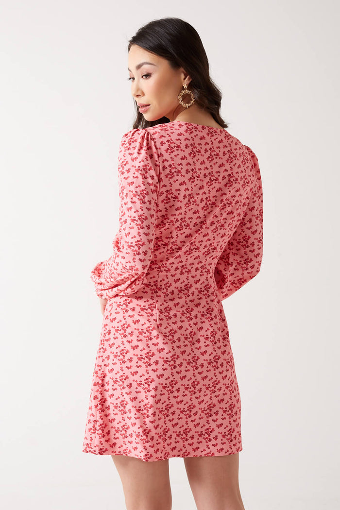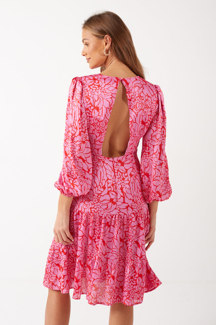 Maisie Floral Print Puff Sleeve Dress in Pink