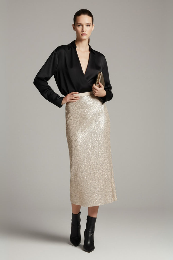 • Sparkly Sequin Long Sleeve Mini Dress in Gold