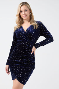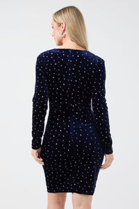 Celine Velvet Diamante Dress in Navy