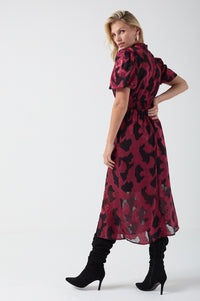 Gina Puff Sleeve Dress in Wine Brocade