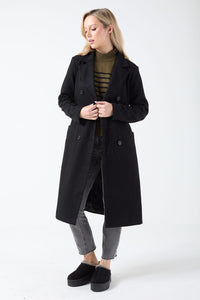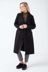 New from Stella the fabulous Maura coat in Black, an effortlessly chic coat like this tailored longline style. With a classic notched lapel, v-neck, button front, long sleeves and a self-tie belt. Layer over a lightweight knit, jeans and trains for a casual day out or pair with a shirt, tailored trousers and heeled boots for an elevated outfit.