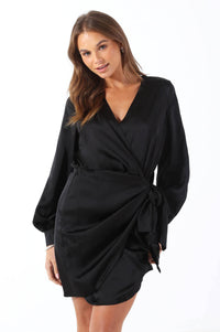 Glamorous Melissa Black-Satin Wrap Short Dress just arrived and is already one of our favourite LBD for this party season. Featuring a wrap design, this Satin dress will have you turning heads! Style it with boots or heels, according to the occasion, both will look fab.