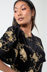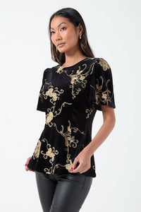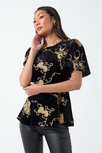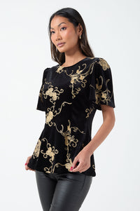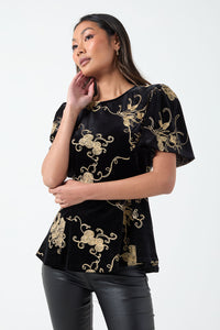 Elevate your wardrobe with the Monica Brocade Velvet Top in classic Black, a must-have piece for your festive occasions. Loved for its luxurious feel and elegant design, this top effortlessly transitions from chic daytime outings to glamorous evening parties, making it a versatile addition to your collection. Whether you're attending a Christmas celebration or a night out, you'll shine in this stunning piece.