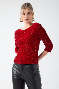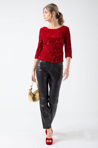 Patsy Sequin Top U Back in Red