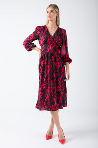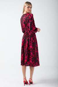 Meet the Rose dress. A floaty feminine midi dress with a bold animal print. Elasticated front and long sleeves with full lining. Pair with you favourite heels and be ready to take in the compliments!