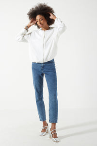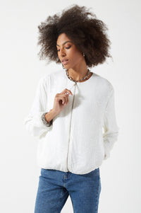 Suzanne Sequin Bomber Jacket in White