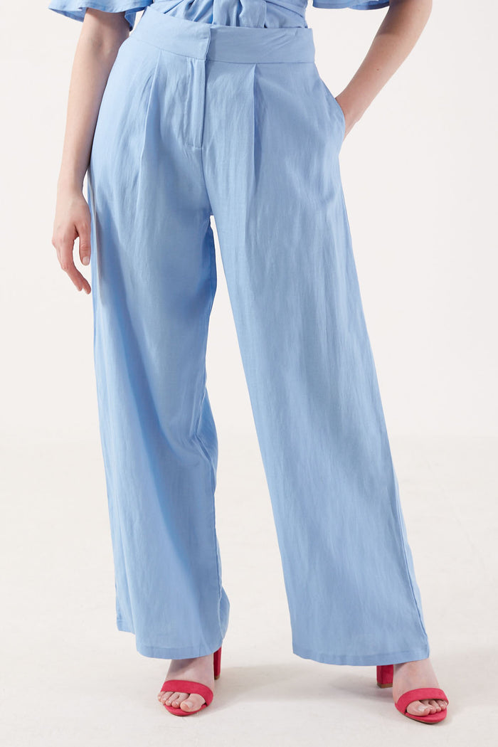 Maggie Stretch Wide Leg Belt Trouser in Baby Pink