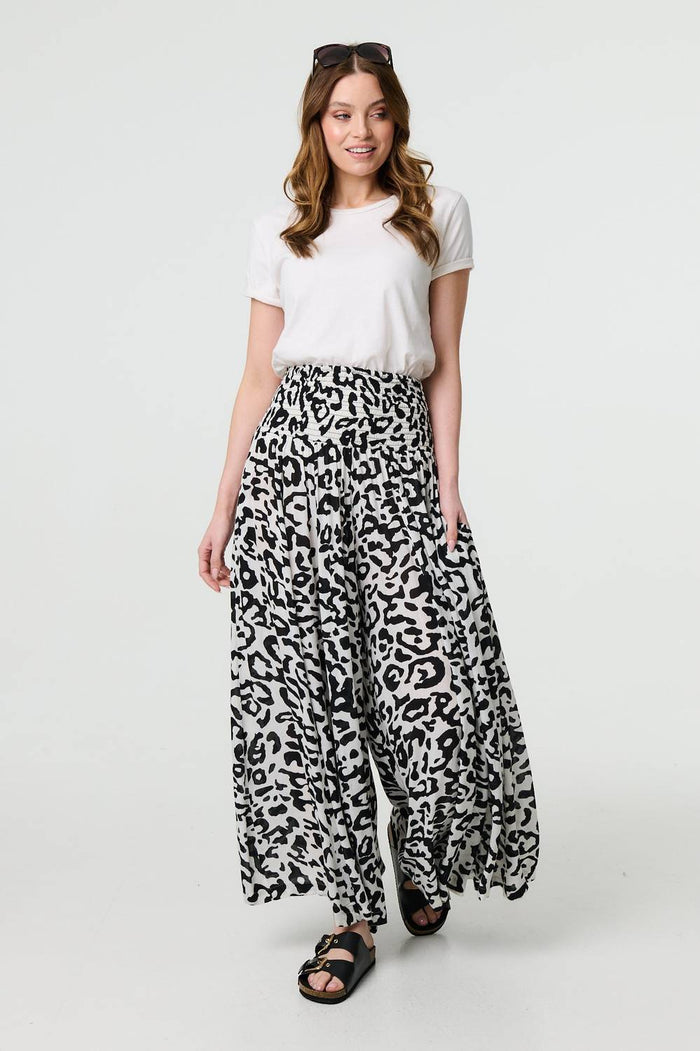 Nancy Zebra Print Wide Leg Tie Waist Trousers in Black and White
