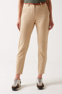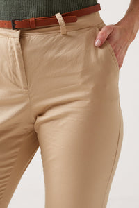 Flash Mid Rise Belted Trousers in Beige