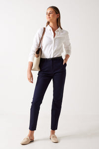 Flash Mid Rise Belted Trousers in Navy