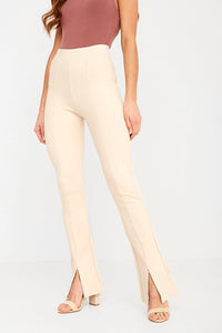 Perfect for dressing up or down, these high waisted flared trousers have a thick stretchy material and a split hem at the front. Wear with heels and a bodysuit for a night out look.