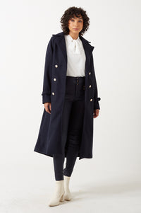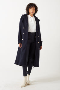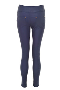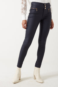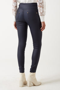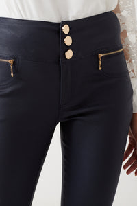 Margo High Waist Coated Trousers in Navy