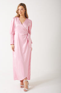 Julie Satin Wrap Dress in Pink