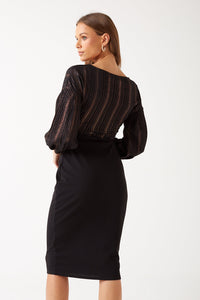 Lenora Foiled Midi Dress in Black