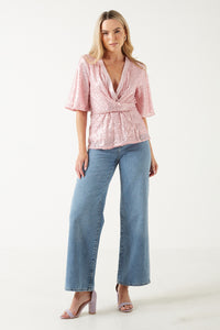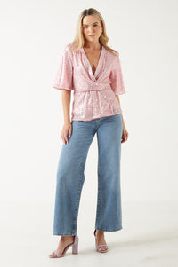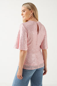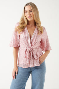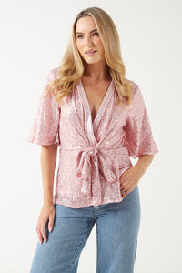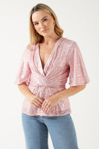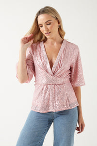 This glamorous sequin top from Marc Angelo is the ultimate party wear piece you need. Style with coated jeans and heels for a night-out look.