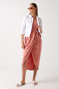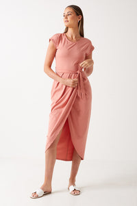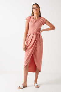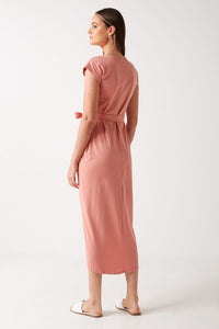 In an allover plain design, style this midi dress with slider sandals and a cross body bag for a Summer city break look.