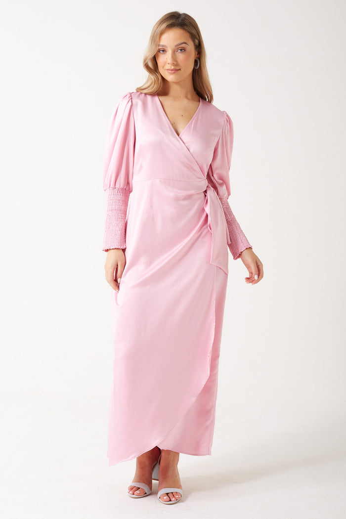 Jesse Animal Print Wrap Maxi Dress in Pink