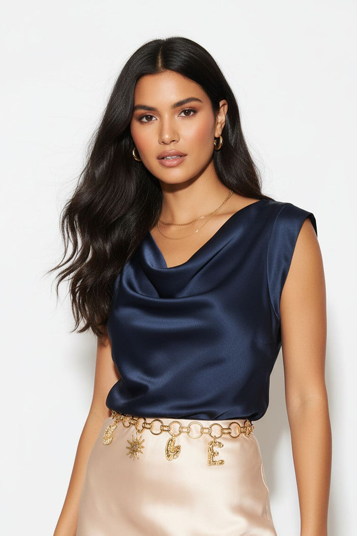 Millie Embellished V Neck Top in Navy