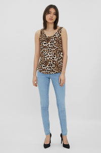 This leopard tank top features a back button closure and lightweight fabric, wear tucked into jeans with trainers for a casual day look.