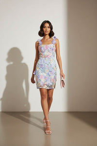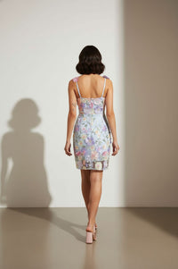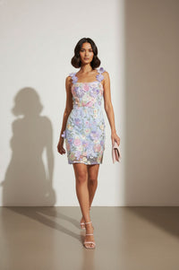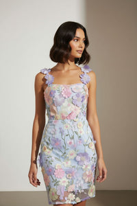 Shauna Lace Applique Short Dress in Blue