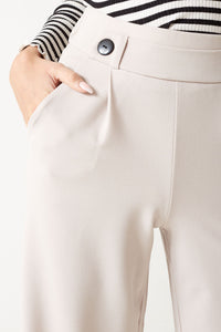 Combining both style and function, these trousers will see you through the office and beyond. Featuring a wide leg design, button waist detail and classic pockets. Wear with a tucked in shirt and court heels or works equally well with slogan t-shirts and trainers.