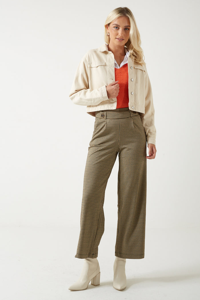 Geggo Mia Button High Waisted Checked Trousers in Beige