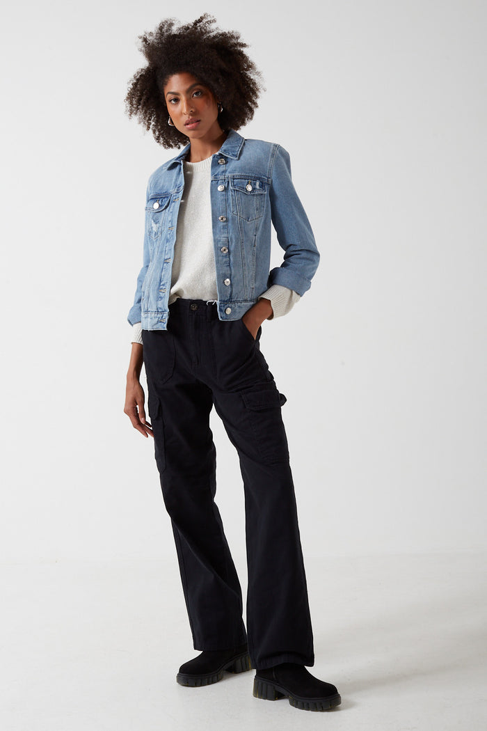 Zelda High Waisted Straight Cargo Trouser in Brown