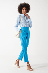 Elise High Waisted Trousers in Blue