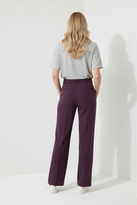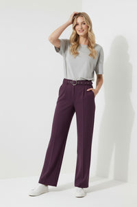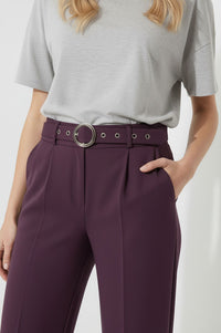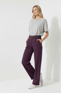 Maggie Stretch Wide Leg Belt Trouser in Plum