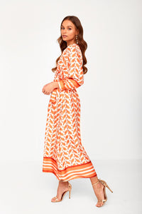 Davina Printed Wrap Dress in Orange