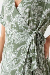 Emilia Paisley Print Wrap Dress in Sage