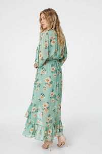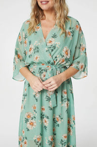 Keva Kimona Wrap Midi Dress in Green