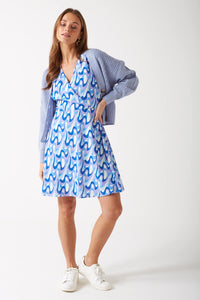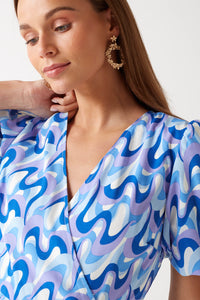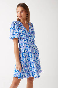 Maisie Swirl Print Puff Sleeve Dress in Blue