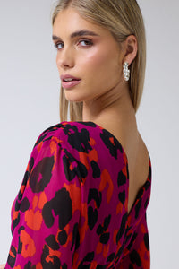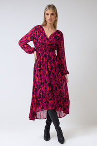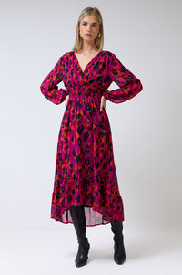 You'll look your best on a special occasion in the Marcela Midi Dress. Featuring long sheer sleeves, a high-low midi skirt, shirred waist, V-Neck and an all-over animal print, this dress will look fab paired with high heels or with knee-high boots and a belt.