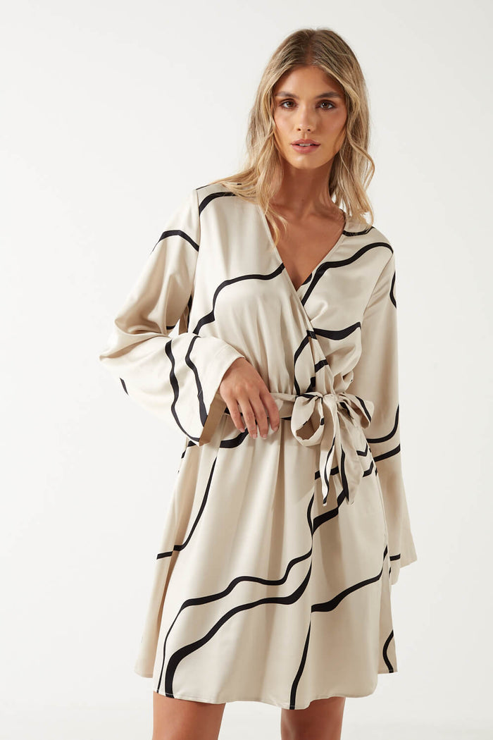 Merle Long Sleeve Short Wrap Printed Dress in Grey