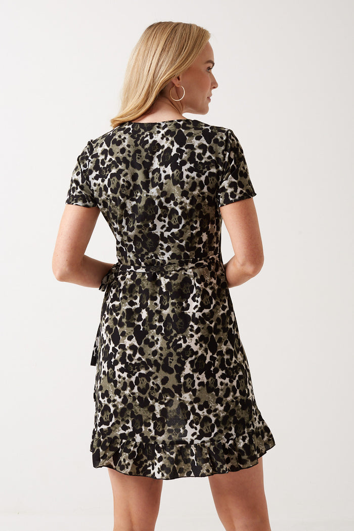 Clara Petite Leopard Print Wrap Dress in Grey