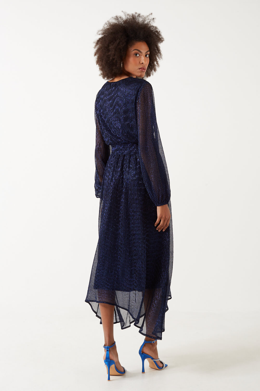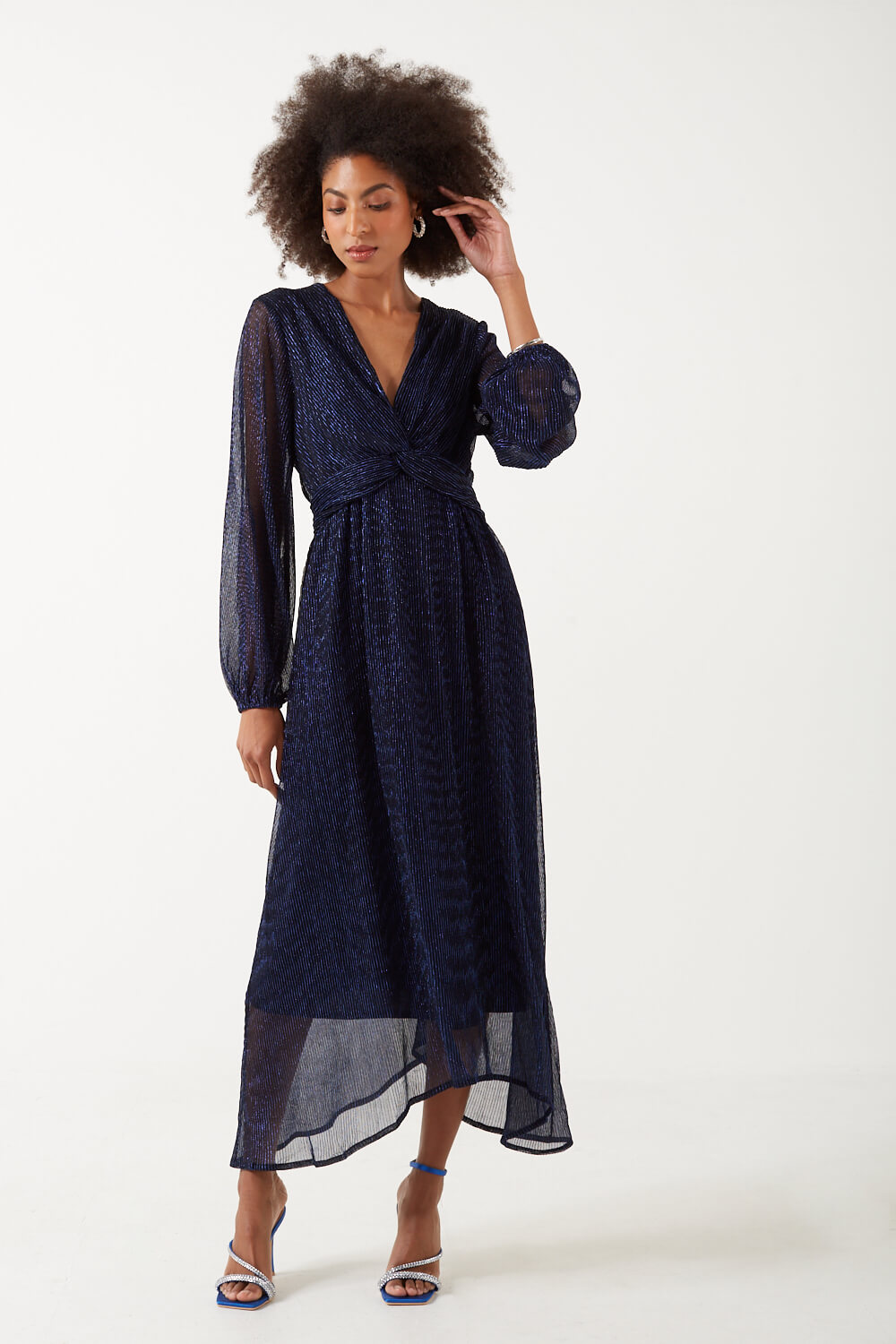 Stand out in this fabulously shimmering lurex dress from Marc Angelo featuring long sleeves with elasticated cuffs and knot detail at the bust for a flattering shape.